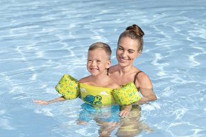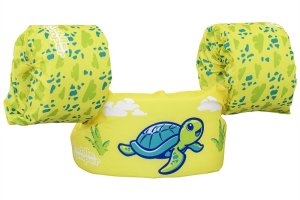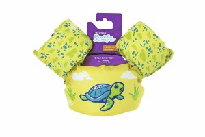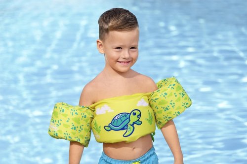 Bestway® Puddle Jumper® Dětská plovací vesta s želvím motivem. Plavecká pomůcka pomáhá malým dětem ve věku od 2 do 6 let naučit se základům plavání a získat bezpečnost v bazénu. Inovativní design záchranné vesty a vodních křidélek zajišťuje, že děti zůstanou bezpečně na vodní hladině. Textilní potah je vyroben z hladkého, pevného a pohodlného polyesterového materiálu. Vesta má také integrované pěnové polstrování a nastavitelný popruh se zapínáním. Naučit se plavat nikdy nebylo tak zábavné a bezpečné. Obvod hrudníku: 56 cm. Maximální nosnost: 15-30 kg. Rozměry balení: 46 x 38 x 12 cm. Používejte pouze pod dohledem dospělé osoby. Věk: 2+