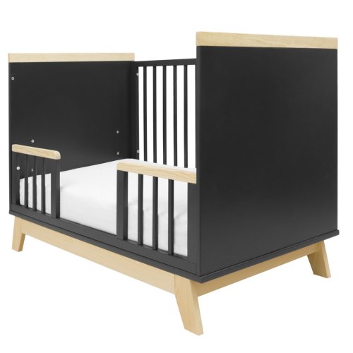 Postýlka má tři úrovně nastavení výšky matrace a tři výsuvné tyče. Až malý majitel postýlky vyroste z kojeneckého věku, doporučujeme odstranit jednu stranu s příčkami. Vysokou bočnici nahraďte zábranou k bokům postýlky. Zábrana ve stejném barevném provedení dodá postýlce prestižní vzhled a dítěti poskytne pocit nezávislosti.