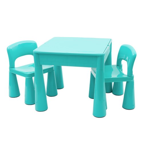 Dětská sada New Baby obsahuje stůl a 2 židličky. Stoleček je velmi praktický, otočením horní desky se stane základem pro stavění kostek stavebnice Lego Klasik i Lego Duplo. Pod horní deskou je prostor pro uskladnění hraček, kreslících potřeb, apod. Do prostoru lze po odstranění horní desky také nalít trošku vody a dítě si naplno užije své oblíbené vodní radovánky nebo lze v tomto prostoru vytvořit mini pískoviště. Rozměry: stůl 51x51x46cm, židlička 36x32x46cm (š,d,v). Výška sedátka 25cm.