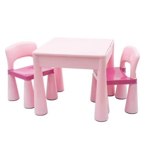 Dětská sada New Baby obsahuje stůl a 2 židličky. Stoleček je velmi praktický, otočením horní desky se stane základem pro stavění kostek stavebnice Lego Klasik i Lego Duplo. Pod horní deskou je prostor pro uskladnění hraček, kreslících potřeb, apod. Do prostoru lze po odstranění horní desky také nalít trošku vody a dítě si naplno užije své oblíbené vodní radovánky nebo lze v tomto prostoru vytvořit mini pískoviště. Rozměry: stůl 51x51x46cm, židlička 36x32x46cm (š,d,v). Výška sedátka 25cm.