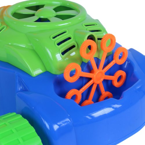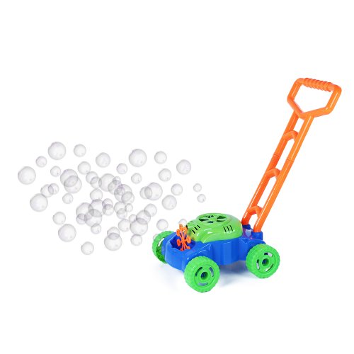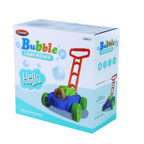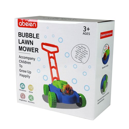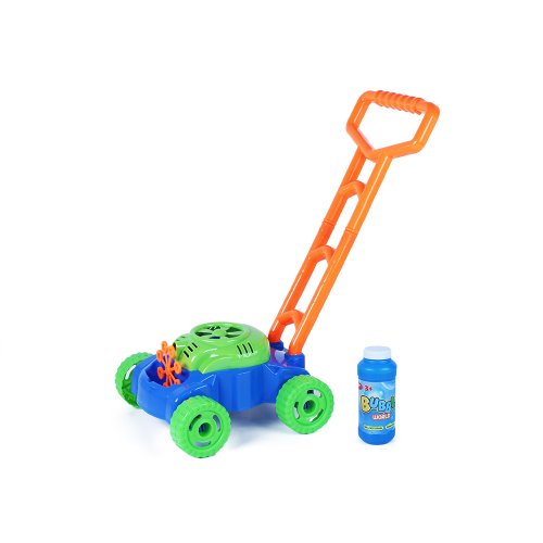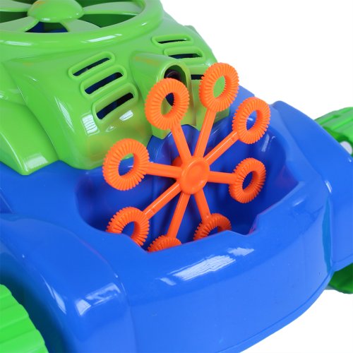 Sekání trávy s touto parádní sekačkou s bublifukem se pro tebe stane opravdovou zábavou! Nalej bublifuk do předem určeného místa a rozjeď to! Milióny malých bublinek se vznesou do prostoru a k tomu ti navíc hraje hudba! Provoz je na 3 ks baterií typu AA, nejsou součástí balení. Bubliny vznikají díky speciální tekutině, která není součástí balení. Se sekačkou můžeš jezdit i bez použití baterií, v tom případě vydává pouze mechanický zvuk.