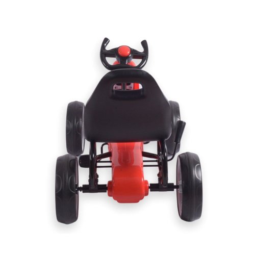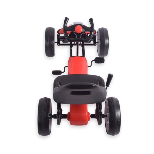 Vozidlo je vyrobeno z lehké kovové konstrukce a vysoce kvalitních plastů pro dlouhou životnost a odolnost proti poškození. Má zabudovaný řetězový pohon s pedály a velká, odolná kola s pěnovými pneumatikami (EVA) pro dobrou přilnavost a pohodlí na různých površích. Ergonomická sportovní řídítka umožňují pevný úchop a snadné řízení, zatímco tvarované sedadlo poskytuje pohodlnou jízdu. Je také vybaveno ruční nouzovou brzdou.