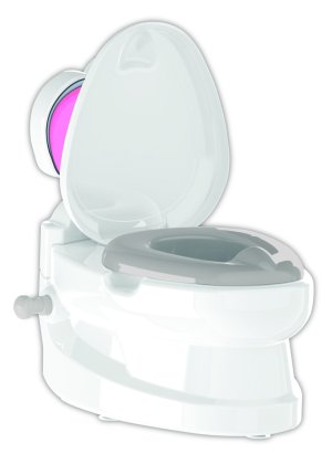 Dětská toaleta – nočník se světlem a zvukem – zvukový efekt splachování toalety. 5bodová protiskluzová poddložka, s držákem na toaletní papír, znovu uzavíratelné víko. Vyjímatelný zásobník pro snadné vyprazdňování a mytí. Vyrábí se bez použití kovových spojovacích prvků, jako jsou šrouby a svorníky. Nehrozí tak koroze (rez) a především bezpečné pro děti. Snadno čistitelné a hygienické. Snadno přenosný. Elegantní a ergonomický design. Vzhledem k tomu, že vypadá jako skutečná toaleta udrží pozornost vašeho dítěte. Vaše dítě se snadno naučí chodit na toaletu…