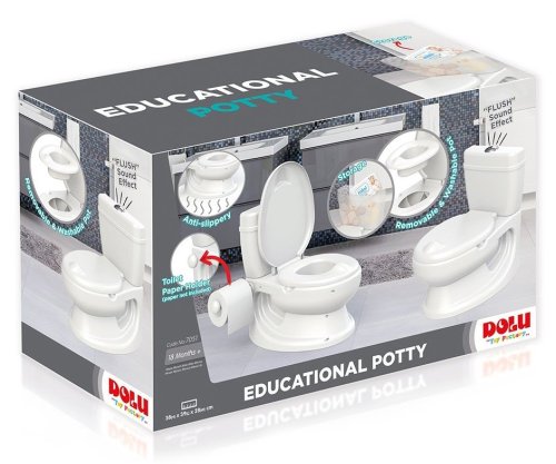 Základem tohoto výrobku je vyjímatelný nočník, který je snadno omyvatelný. Na boční straně je držák na toaletní papír. Na horní části toalety je splachovadlo, které vydává stejný zvuk jako při skutečném spláchnutí. Záchod je, ze spodní strany, opatřen protiskluzovou podložkou. Do nádržky lze uschovat drobnosti jako např. vlhčené ubrousky, hračku apod.