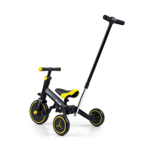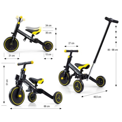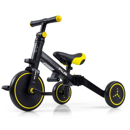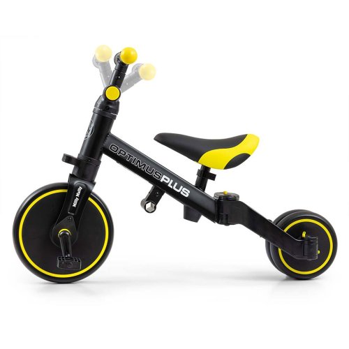 Univerzální dětská šlapací tříkolka Milly Mally 4v1 Optimus byla navržena tak, aby se stala tím nejlepším co můžete nabídnout svému malému závodníkovi. Díky stabilní konstrukci poskytuje dítěti maximální úroveň bezpečnosti a tímto mu usnadňuje získávání nových dovedností. Největší výhodou této tříkolky je její variabilita. Jakmile dítě získá základy jízdy, připojíme pedály nebo jí během okamžiku změníme na klasické jednostopé odrážedlo. Pěnová kola výborně absorbují rázy, poskytují dobrou přilnavost, zajistí pohodlí během jízdy a neunaví vašeho malého závodníka. Dostatečný rozvor kol poskytuje mimořádnou stabilitu, bezpečnost během používání doma i venku. Doraz nedovolí přetočení řídítek.