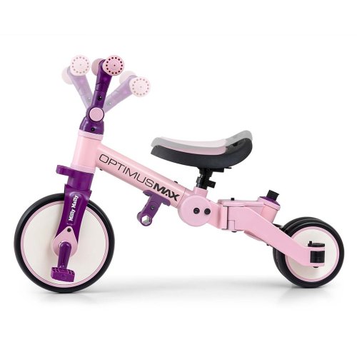 Optimus Max byl navržen tak, aby se stal jednou z nejlepších voleb pro první vozidlo vašeho dítěte. Díky stabilní tříkolové konstrukci poskytuje dítěti odpovídající úroveň bezpečnosti a usnadňuje získávání nových dovedností. Když má dítě již zvládnuté základy jízdy a nevyžaduje pomoc rodiče prostřednictvím řídicí rukojeti, můžeme přidat pedály nebo jej přeměnit na klasické odrážedlo.