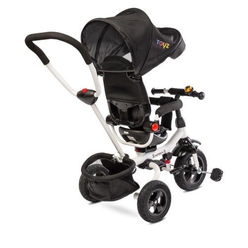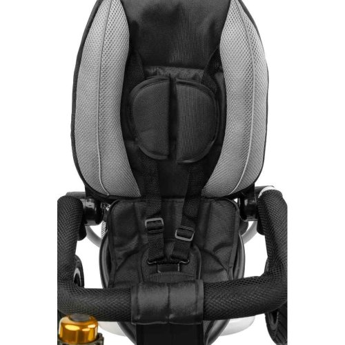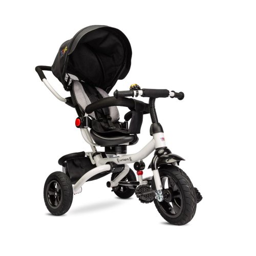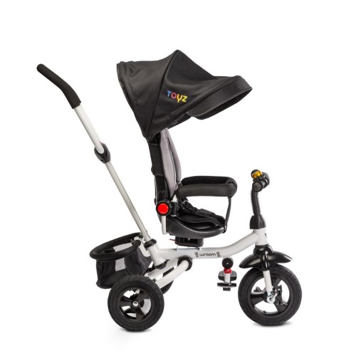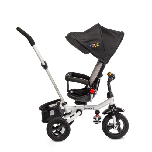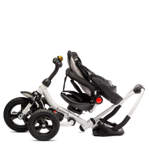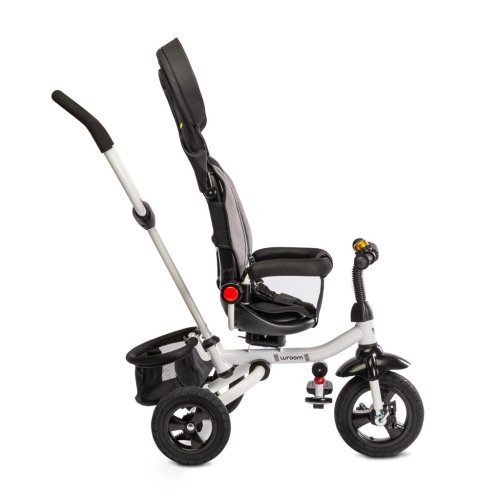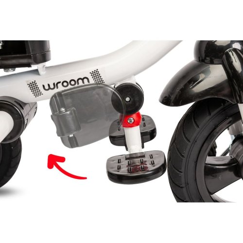 Dětská šlápací tříkolka Wroom s otočným sedadlem je pohodlná tříkolka, kterou lze použít dvěma způsoby: dítě se může vozit dopředu nebo dozadu proti směru jízdy a nohy mít položené na sklopné opěrce nebo dopředu jezdit samo. Rozpojovací zábrana usnadňuje nasednutí a její měkké polstrování zajišťuje bezpečnost a pohodlí při jízdě. V zadní části je košík na drobné předměty a rukojeť pro řízení s dvoustupňovým nastavením výšky. Trojkolka má kola z pěny, takže se nemusíte starat o nafukování nebo obávat propichnutí pneumatik. Obě zadní kola mají samostatné brzdy. Skládací konstrukce usnadňuje přepravu v kufru a její skladování, když se nepoužívá.