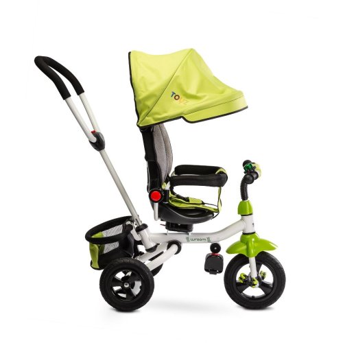 Dětská šlápací tříkolka Wroom s otočným sedadlem je pohodlná tříkolka, kterou lze použít dvěma způsoby: dítě se může vozit dopředu nebo dozadu proti směru jízdy a nohy mít položené na sklopné opěrce nebo dopředu jezdit samo. Rozpojovací zábrana usnadňuje nasednutí a její měkké polstrování zajišťuje bezpečnost a pohodlí při jízdě. V zadní části je košík na drobné předměty a rukojeť pro řízení s dvoustupňovým nastavením výšky. Trojkolka má kola z pěny, takže se nemusíte starat o nafukování nebo obávat propichnutí pneumatik. Obě zadní kola mají samostatné brzdy. Skládací konstrukce usnadňuje přepravu v kufru a její skladování, když se nepoužívá.