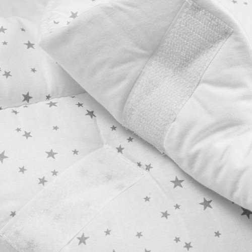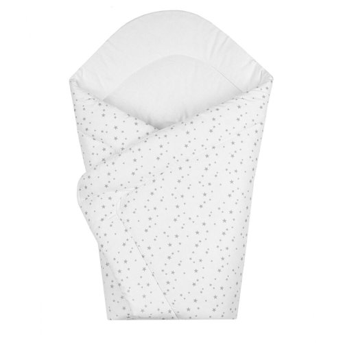 Dětská zavinovačka New Baby. Zavinovačku zdobí šedé hvězdičky. Zapínání na suchý zip. Rozměry cca 75x75 cm. Složení: povlak 100% bavlna, výplň 100% polyester. Umístění vzoru na zavinovačce se z důvodu strojové výroby mírně liší.