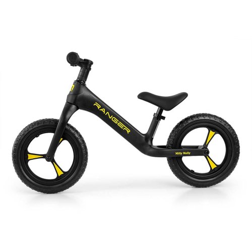 Odolná a vyrobená nejnovější technologií EVA pěny, 12" kola odolná proti propíchnutí, která není třeba nafukovat, jsou bezúdržbová. Ergonomické, výškově nastavitelné sedlo s měkkou výplní zajišťuje dítěti pohodlí při jízdě a roste s dítětem. Kolo Ranger má řídítka v kuličkových ložiskách, rovněž kola s kuličkovými ložisky. Protiskluzové rukojeti z měkké gumy zajišťují pevné uchopení a pohodlné vedení.