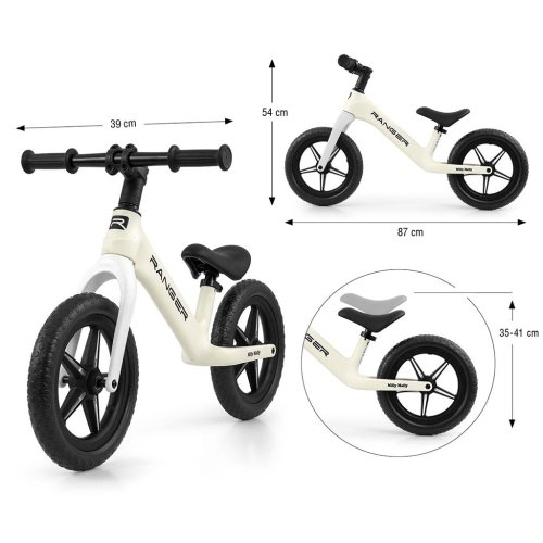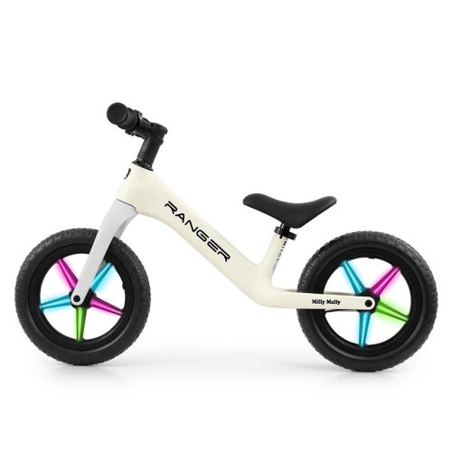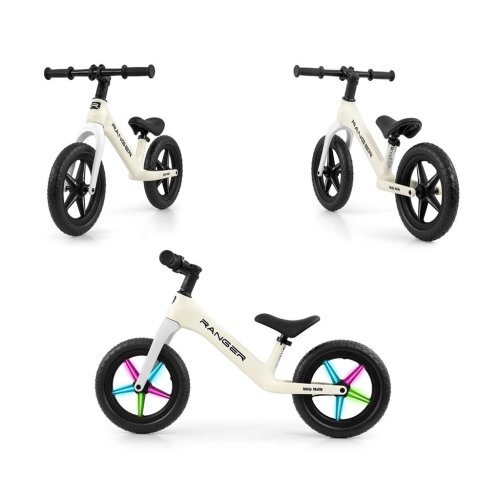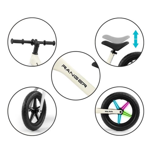 Odolná a vyrobená nejmodernější technologií z pěny EVA. 12" kola, která se nepropichují a není třeba je nafukovat, jsou bezúdržbová. Ergonomické výškově nastavitelné sedlo s měkkým polstrováním zajišťuje pohodlí dítěte a roste s ním. Kolo Ranger Flash má ložisková řídítka a ložisková kola. Protiskluzové rukojeti z měkké gumy zajišťují bezpečné uchopení a pohodlnou manipulaci.