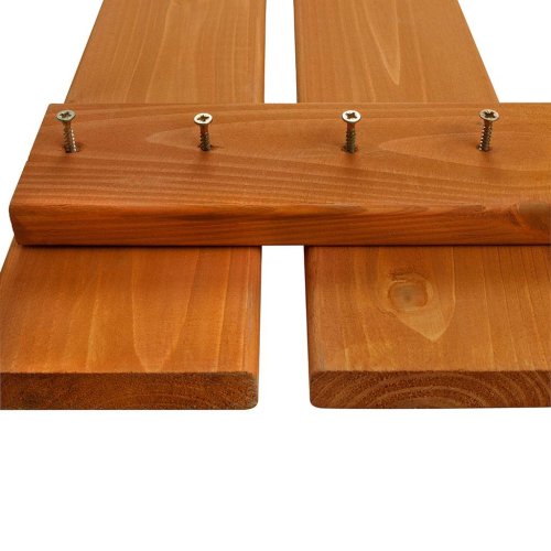 - Pro zajištění bezpečnosti byly desky vyhlazeny a zaobleny a malé desky lavičky jsou speciálně seříznuty, aby se zabránilo kontaktu s ostrými hranami