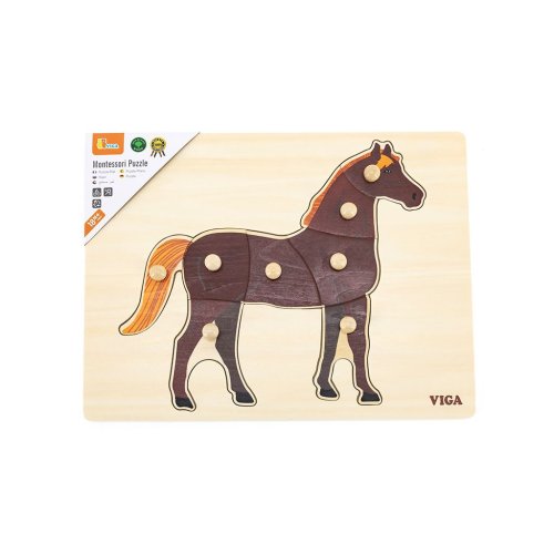Dílky skládačky jsou opatřeny dřevěnými kolíčky, díky nimž batole snadno uchopí skládačku do ruky a umístí ji na správné místo na dřevěném podkladu. Jedná se o jeden z nejlepších způsobů, jak procvičovat soustředění a koordinaci ruky a oka.