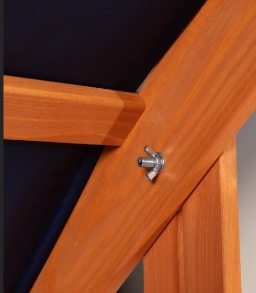 Pískoviště je dodáváno se stříškou, která ochrání vaše malé stavitele před nepříjemným sluncem. Stříška je výškově a sklonově nastavitelná. Po skončení hry zakryje celou plochu pískoviště a tím ochrání písek a hračky před deštěm nebo nečistotami od zvířat. Je vyrobena z velmi odolné a nepromokavé látky používané na výrobu stanů, markýz apod.
