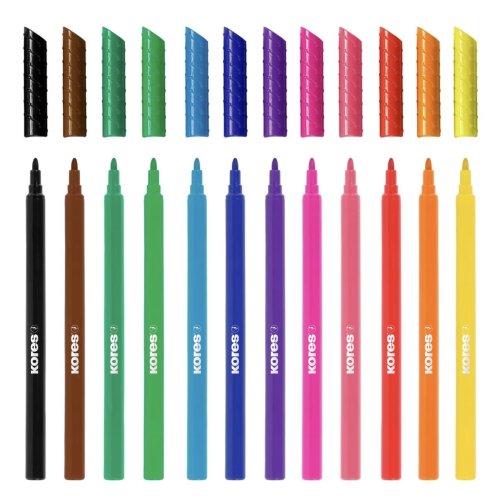 Dětské fixy s tenkými hroty dlouhé životnosti Tenký hrot: Ideální pro precizní vybarvování 12 intenzivních a zářivých barev Vypratelné z většiny textilií za použití vody a mýdla Plynulý tok inkoustu …