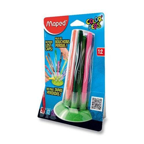 PŘEDNOSTI barevných fixů Maped ColorPeps, * BEZPEČNOST - prodyšný uzávěr, * STŘEDNÍ HROT - seříznutý hrot pro tenkou a širokou linku, * ODOLNOST - hrot odolný proti zatlačení či poškození, * ERGONOMICKÝ ÚCHOP - trojhranný tvar v úchopové části pro lepší držení a pohodlnější používání, * VYPRATELNÉ - inkoust vypratelný z většiny textilií při praní v pračce na 40°C, * ZÁBAVENÉ OZNAČENÍ BARVY, [fix 2,8 mm], [pratelné] [odolný proti zatlačení]