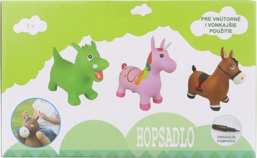 dětské hopsadlo z kvalitního gumového materiálu (PVC) je vhodné pro vnitřní i venkovní použití, uši slouží jako držadla pro lepší stabilitu dítěte při hopsání, součástí balení je nafukovací pumpička.