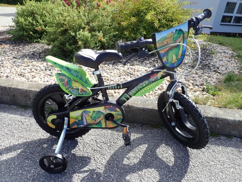 Dětské jízdní kolo Dino Bikes 14" DINOSAURUS zaujme atraktivním designem s motivem dinosaurů a robustní konstrukcí vhodnou pro malé cyklisty. Díky kolům o velikosti 14", přídavným balančním kolečkům a doporučení pro děti s výškou 95 až 115 cm je ideální pro první samostatné jízdy na kole.