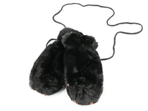Dětské rukavice palčáky z umělé kožešiny mají na dolní straně hravý prvek v podobě medvědích tlapek a drápků. Uvnitř jsou zateplené příjemným plyšovým kožíškem. Hodí se do zimy, dětské ruce perfektně zahřejí. Jsou je navzájem spojit přiloženou šňůrou dlouhou 1,3 metru, která se přiváže k poutkům u okraje rukavic. Slouží na provlečení rukávy, aby děti rukavice neztratily. Rukavice doporučujeme pro děti ve věku 8 - 12 let. Šířka je měřená na volně položených rukavicích uprostřed (bez palce).