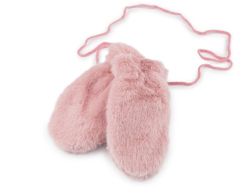 Dětské kožešinové rukavice palčáky s tlapkou a šňůrou - pudrová