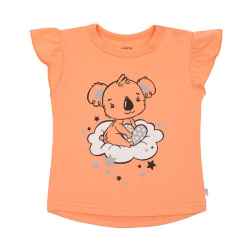 Holčičí bavlněné pyžamko české značky New Baby Dream s medvídkem. Letní pyžamko se skládá z trička s krátkým rukávem a kraťasů. Tričko s volánky zdobí na přední straně roztomilý obrázek medvídka na obláčku a hvězdiček. Zapínání na cvočky na ramínku. Kraťasy jsou celopotištěné medvídkami a na nohavičkách mají roztomilé volánky. V pase je širší lemem s gumičkou, který netlačí na bříško miminka. Vhodné i jako dětské letní oblečení. Složení: 100 % bavlna.