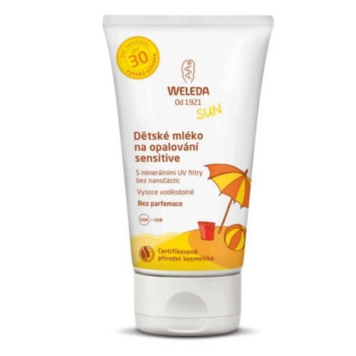 Vysoce voděodolné tělové mléko na opalování SPF 30 pro děti.