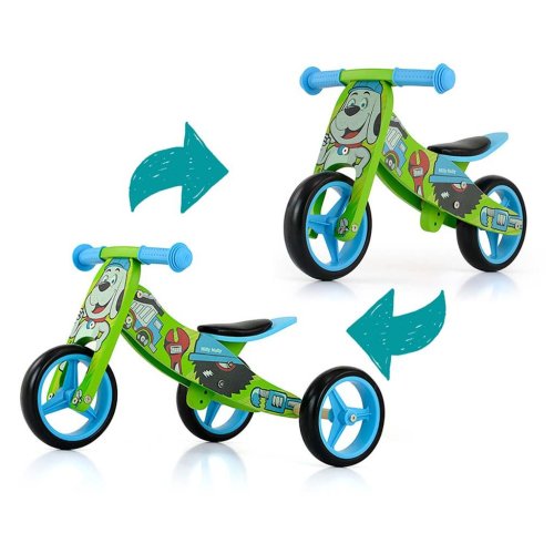Dětské multifunkční dřevěné odrážedlo Milly Mally JAKE je ideální pro děti, které se právě začínají učí jezdit na kole a přitom nejsou schopné udržet rovnováhu na dvou kolech. Výhodou odrážedla JAKE je, že z tříkolky se snadno stane odrážedlo na dvou kolech. <BR>Charakteristika:<BR>- dvě funkce (tříkolka, odrážedlo-2 kola)<BR>- bytelná dřevěná konstrukce<BR>- 7 " pěnová kolečka <BR>- stabilní a lehká konstrukce<BR>- protiskluzové rukojeti z plastového materiálu<BR>- pohodlné, měkké nastavitelné sedadlo<BR>- regulace sedadla: 3 úrovně<BR>- kluzná ložiska<BR>- moderní design<BR>- maximální zatížení 25 kg<BR>- věkové rozmezí 18-36 měsíců<BR> je v souladu s evropskými bezpečnostními normami<BR>Rozměry:<BR>- šířka odrážedla - 3 kola: cca 42 cm<BR>- šířka odrážedla - 2 kola: cca 35 cm<BR>- šířka řídítek: cca 34 cm<BR>- výška říditek: cca 36 cm<BR>- výška sedadla od 23-27 cm - tříkolka<BR>- výška sedadla od 26-30 cm - odrážedo - 2 kola<BR>- průměr koleček cca 18 cm<BR>- celková délka cca 65 cm <BR>- výška cca 36 cm<BR>Váha<BR>- tříkolka cca: 2,13 kg<BR>- odrážedlo - 2 kola - cca 1,76 kg