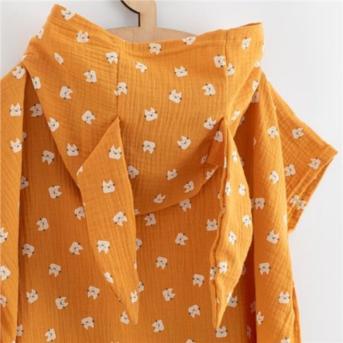 Dětské mušelínové pončo New Baby Feeling. Stylové pončo nejen na doma, ale i na plavání u bazénku, nebo u vody. Mušelínové pončo je díky materiálu lehké, vzdušné a krásně savé. Pončo bude chránit dítě před chladem a poslouží i jako jemná osuška. Díky volnému jedinečnému střihu a roztomilým ouškám udělá dětem velkou radost. Svým střihem s děťátkem poroste a padne na každou postavu. Vypadá skvěle a lze využívat po celý rok. Pro snazší oblékání a svlékání jsou na boku cvočky. Tím vznikne možnost provést otvor na ruku, nebo nechat střih volný. Vpředu je praktická kapsa, která se dětem určitě bude velmi hodit.