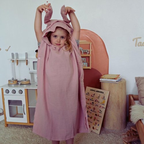 Dětské mušelínové pončo New Baby Feeling. Stylové pončo nejen na doma, ale i na plavání u bazénku, nebo u vody. Mušelínové pončo je díky materiálu lehké, vzdušné a krásně savé. Pončo bude chránit dítě před chladem a poslouží i jako jemná osuška. Díky volnému jedinečnému střihu a roztomilým ouškám udělá dětem velkou radost. Svým střihem s děťátkem poroste a padne na každou postavu. Vypadá skvěle a lze využívat po celý rok. Pro snazší oblékání a svlékání jsou na boku cvočky. Tím vznikne možnost provést otvor na ruku, nebo nechat střih volný. Složení: mušelín-100% bavlna. Rozměr: 80 cm bez kapuce, šířka: 59 cm.