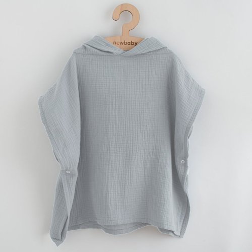 Dětské mušelínové pončo New Baby Feeling. Stylové pončo nejen na doma, ale i na plavání u bazénku, nebo u vody. Mušelínové pončo je díky materiálu lehké, vzdušné a krásně savé. Pončo bude chránit dítě před chladem a poslouží i jako jemná osuška. Díky volnému jedinečnému střihu a roztomilým ouškám udělá dětem velkou radost. Svým střihem s děťátkem poroste a padne na každou postavu. Vypadá skvěle a lze využívat po celý rok. Pro snazší oblékání a svlékání jsou na boku cvočky. Tím vznikne možnost provést otvor na ruku, nebo nechat střih volný. Složení: mušelín-100% bavlna. Rozměr: 50 cm bez kapuce, šířka: 59 cm.