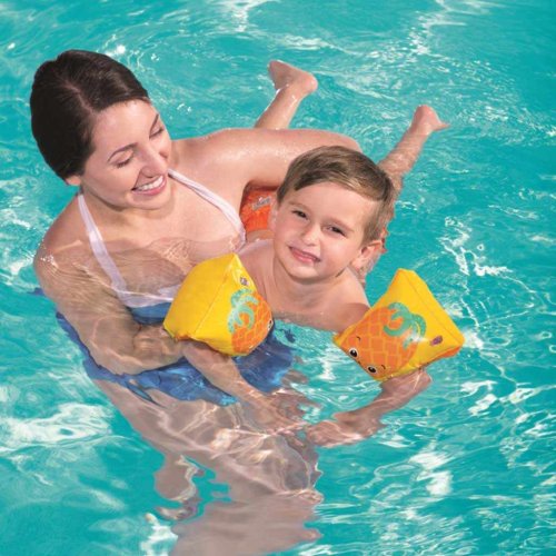 Dětské nafukovací rukávky Bestway. Barevné, nafukovací plavací rukávky. Určeno pro děti od 3 do 6 let. Rozměry:cca 23x15 cm. Složení: PVC.