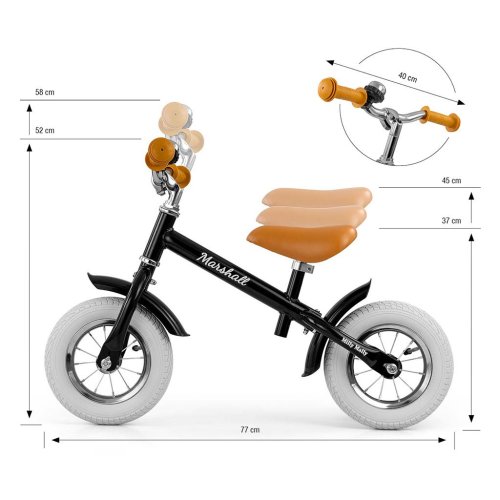 Jízda na odrážedle je ideální pro učení rovnováhy, takže pozdější jízda na klasickém kole bude mnohem jednodušší. Kolo je bez pedálů, díky čemuž se dítě dokáže soustředit hlavně na držení rovnováhy a směr jízdy. Široká 10 ti palcová nafukovací kola jsou perfektně absorbují rázy, což zvyšuje pohodlí při jízdě. Díky ergonomicky tvarované a výškově nastavitelné sedlovce s měkkou výplní, kolo spolu s vašim dítětem poroste. Výškově nastavitelná řídítka jsou uložena v kuličkovém ložisku. Protiskluzové gumové rukojeti zajistí dítěti bezpečný úchop a pohodlnou manipulaci. Klasický a ergonomický design kola zaručí dlouhou životnost a pohodlí během používání. Ocelový rám odrážedla poskytuje ještě větší odolnost a jeho kontrukce je přizpůsobena k dlouhodobému užívání.