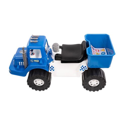 Policejní odrážedlo Bayo POLICE charakterizuje pevná konstrukce a stabilní kola umožňující jeho použití nejen doma, ale i venku. Pod sedadlem se nachází úložný prostor, ve kterém si může "malý strážce zákona" vozit své náčiní. Široké a stabilní sedadlo zajistí volnost pohybu a bezproblémové nasedání. Otevřme svět dětské fantazie a pomáhejme jim rozvíjet jejich motorické schopnosti.