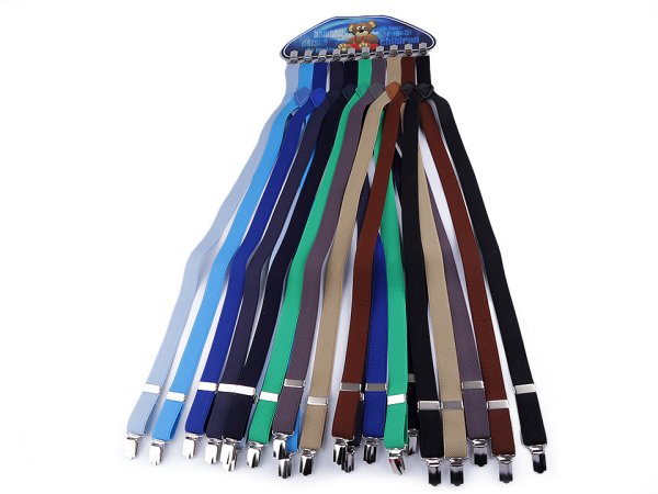 Dětské šle o délce 80 cm a šířce 2,5 cm. Jde o kvalitní tkaný český výrobek. Šle jsou vyrobené ze 75% polyesteru a 25% elastodienu. Originální balení obsahuje 10 ks šlí v náhodném barevném mixu. Vhodné jsou pro kluky i děvčata. Přichycují se pomocí kovových žabek obdélníkového tvaru. [Šle jsou určené pro výšku postavy 140 - 160 cm.]