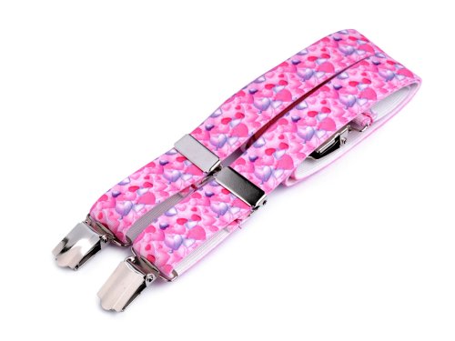 Dětské šle o délce 70 cm a šířce 2,5 cm s různými potisky, které se neodírají ani neloupou. Originální balení obsahuje 10 ks šlí v různých barvách a motivech. Jedná se o kvalitní český výrobek. Přichycují se pomocí kovových žabek, jsou vyrobené ze 100% polyesteru. [Šle jsou určené pro výšku postavy 120 - 140 cm.]