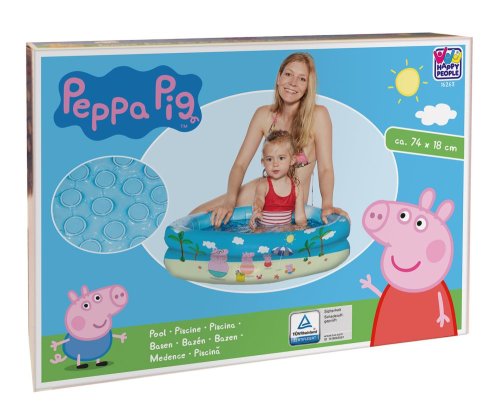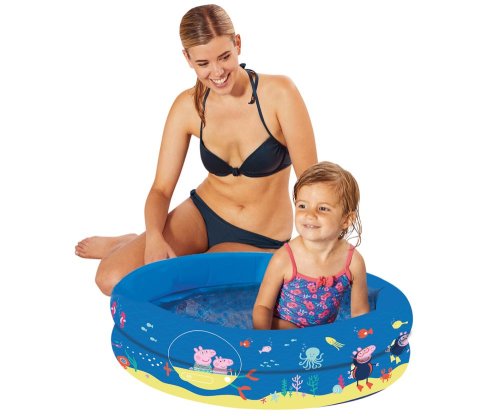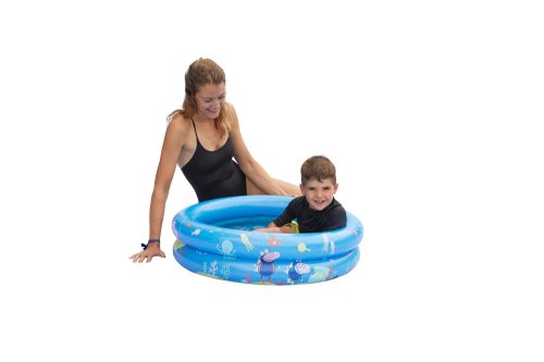 Dětský bazének Peppa Pig, nafouknutý cca. 74x18 cm, vyfouknutý cca. 67x22 cm, s nafukovacím dnem, 2 kruhy