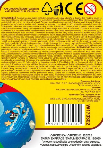 Dětský nafukovací člun do vody s motivem Krtečka a jeho kamarádů.