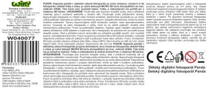 Dětský digitální fotoaparát Panda - foto 40Mpx, video Full HD. Rozměry 10,5x4x9,5 cm. Rozlišení fotografií 40 megapixelů, videa Full HD (1920x1080). Časovač, vložení času, různé efekty (rámečky, vložené animace, filtry) fotografií, hry, mp3 přehrávač, 2,0 palcový displej. Vestavěná 400mAh Li-ion baterie, USB kabel a popruh součástí. Provoz 100 min. Kompatibilní s micro SD kartami - max. 32GB. Paměťová karta není součástí.