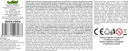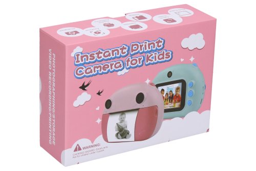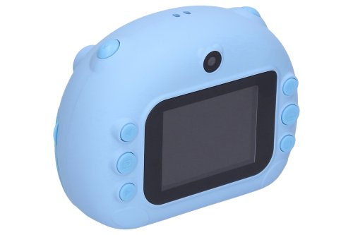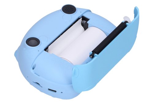 Dětský digitální fotoaparát s tiskárnou modrý - foto 12Mpx, video Full HD. Rozměry 11x4,5x8,5 cm. Rozlišení fotografií 12 megapixelů (4800x2656), videa Full HD (1920x1080). Nastavení kvality tisku. Selfie kamera, časovač, sériové snímání, vložení času, různé efekty (rámečky, vložené animace, filtry) fotografií, hry, mp3 přehrávač, 2,4 palcový displej. Zvlášť tlačítka pro focení, pro natáčení videa, pro tisk fotografií. Vestavěná 750mAh baterie, provoz 180 min, USB kabel součástí. Šířka fotopapíru 5,5 cm, tisknutelná šíře 4,8 cm. 2 role fotopapíru a popruh součástí. Kompatibilní s micro SD kartami - max. 32 GB. Paměťová karta není součástí.