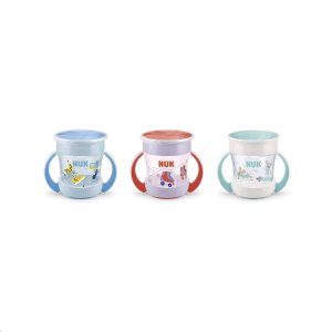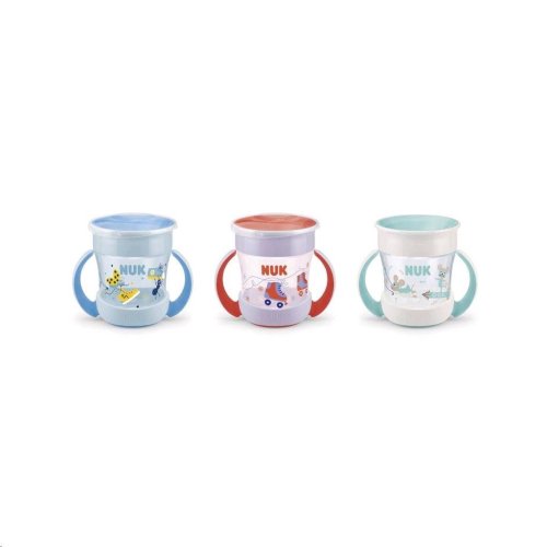 Dětský hrníček MIni Magic NUK 360° s víčkem. Revoluční uzávěr umožňuje pít bez náustku či brčka z každé strany, díky čemuž se dítě učí samo pít jako z normálního hrníčku. Neobsahuje BPA. Charakteristika:<BR>- pití je možné ze všech stran díky 360° pitnému okraji<BR>- odolný proti vylití – díky silikonovému disku<BR>- silikonový disk se chová jako těsnění, které brání rozlití nápoje<BR>- jednoduše ovladatelní – jen 3 části<BR>- jednoduché na čištění – možnost mýt v myčce<BR>- vyrobeno z plastu (PP) a silikonu<BR>- kompatibilní s dalšími částmi řady NUK Easy learning<BR>- pro děti od 6 měsíců, 160ml