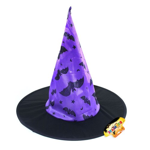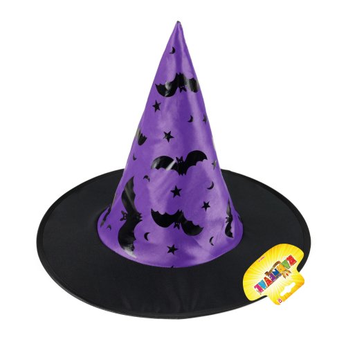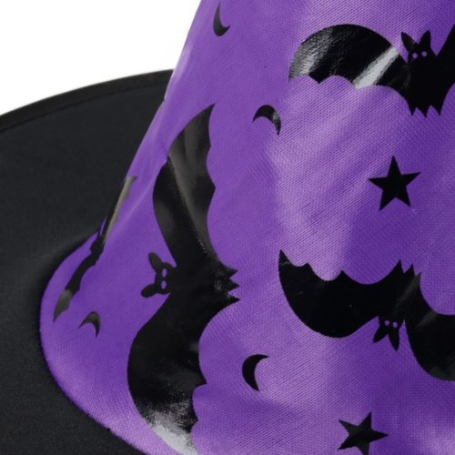 Úžasný čarodějnický klobouk s potiskem ve tvaru netopýrů. Ideální na halloweenský večírek nebo karneval!