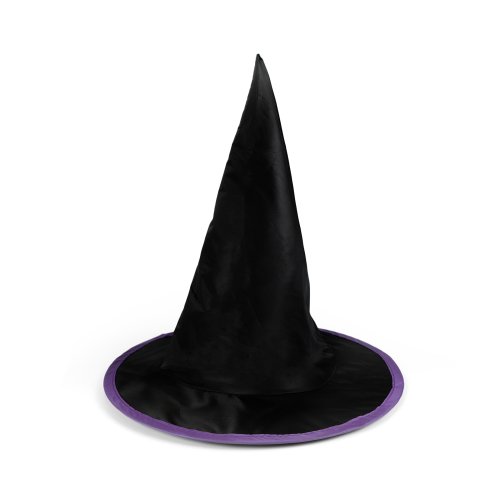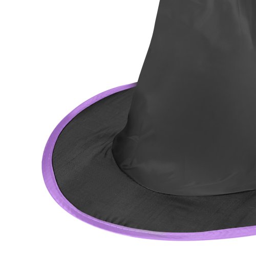 Čarodějnický klobouk nesmí chybět ve tvé karnevalové sbírce! Klobouk je vyroben z černé šusťákoviny a je dekorován fialovým lemem.