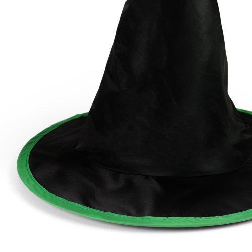 Čarodějnický klobouk nesmí chybět ve tvé karnevalové sbírce! Klobouk je vyroben z černé šusťákoviny a je dekorován zeleným lemem.