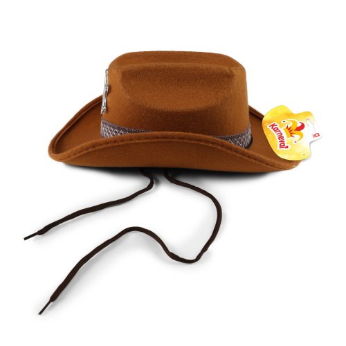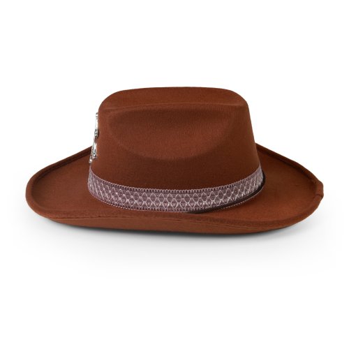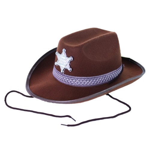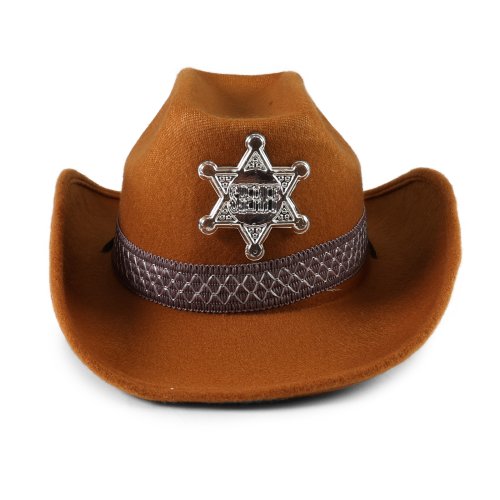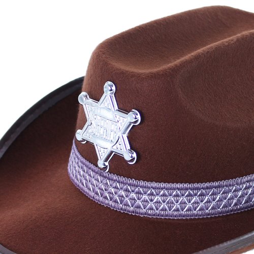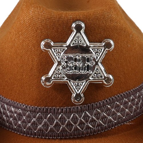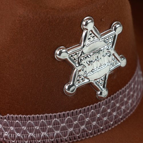 Stylový kovbojský klobouk pro děti! Tento hnědý klobouk na gumičku je navíc zdoben stuhou a šerifskou hvězdou. Nasaď si klobouk a jako šerif budeš mít ve svém městě určitě respekt!