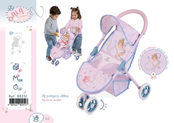 Sportovní tříkolový kočárek DeCuevas GALA 2023 potěší každou malou milovnici panenek. Díky nízké hmotnosti a výšce rukojeti je ideální i pro menší děti od 3 let. Stylová kolekce s gymnastkou se hodí na každou procházku. Vejde se do něj panenka do velikosti až 46 cm.