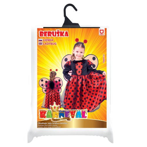 Půvabný karnevalový kostým s motivem berušky S je určen pro holčičky ve věkovém rozmezí 4-6 let (105-116 cm). Balení obsahuje saténové puntíkované šatičky v červeno-černé barvě zdobené tylem, perfektně sladěná křídla a čelenku s tykadly. Proměň se na berušku díky tomuto roztomilému kostýmu!