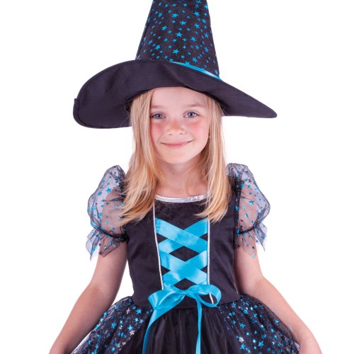 Parádní karnevalový kostým s motivem čarodějnice! Kostým modro-černé barvy ve velikosti M je určen pro holčičky ve věkovém rozmezí 6-8 let (117-128 cm). Šaty jsou zdobené tyrkysově modrou stuhou a metalickými hvězdičkami. Součástí balení je perfektně sladěný klobouk, který je rovněž zdoben modrými hvězdičkami a stuhou. Staň se hvězdou karnevalového nebo Halloweenského večírku! Nejen letos je potřeba myslet EKO-nomicky i EKO-logicky! EKO-balení je vhodné zejména pro e-shopy kde zákazník nakupuje dle fotografie a není třeba velkého balení s věšákem. EKO-logicky – na balení bylo použito méně plastu a dalších materiálů. Jedná se o malý transparentní obal s fotografií. EKO-nomicky –EKO-obal zabere jen polovinu místa – šetřete skladová místa s námi!