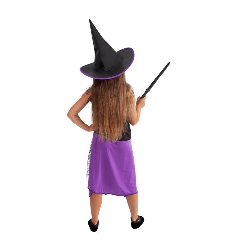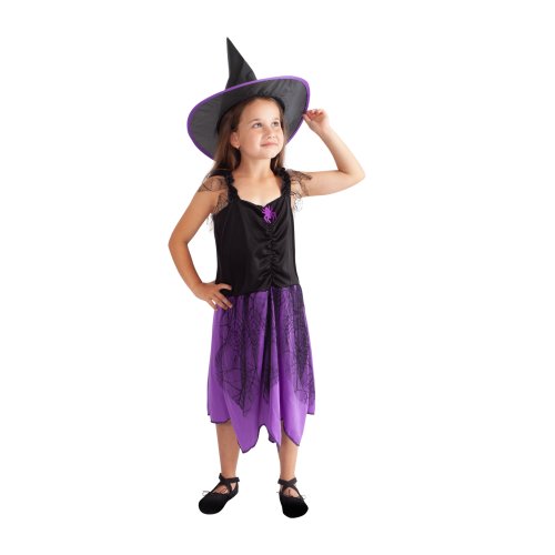 Roztomilý karnevalový kostým černo-fialové barvy udělá radost každé holčičce! Souprava obsahuje šaty dekorované pavučinkou a perfektně sladěný klobouk. Set ve velikosti M je určen pro holčičky ve věkovém rozmezí 6-8 let. Vhodný i na oslavu Halloweenu! Nejen letos je potřeba myslet EKO-nomicky i EKO-logicky! EKO-balení je vhodné zejména pro e-shopy kde zákazník nakupuje dle fotografie a není třeba velkého balení s věšákem. EKO-logicky – na balení bylo použito méně plastu a dalších materiálů. Jedná se o malý transparentní obal s fotografií. EKO-nomicky –EKO-obal zabere jen polovinu místa – šetřete skladová místa s námi!