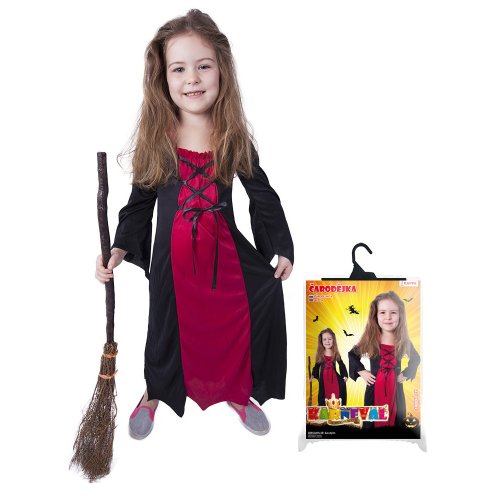 Roztomilý karnevalový kostým čarodějky udělá radost každé holčičce! Souprava obsahuje pouze šaty. Hůlka ani klobouk nejsou součástí balení. Set ve velikosti S je určen pro holčičky ve věkovém rozmezí 4-6 let. Staň se nejhezčí čarodějnicí karnevalu díky tomuto kostýmu! Vhodný i na oslavu Halloweenu.