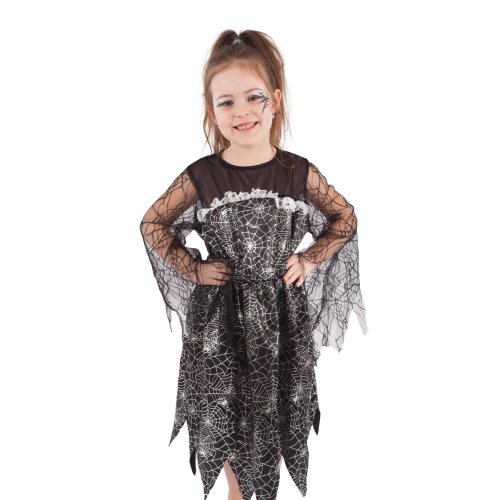 Magický karnevalový kostým pro malé čarodějnice! Kostým ve velikosti S je určen pro holčičky ve věkovém rozmezí 4-6 let (105-116 cm). Černé šaty jsou dekorovány stříbrnou pavučinkou. S tímto úchvatným kostýmem se zaručeně staneš hvězdou karnevalu i Halloweenu! Koště ani hůlka nejsou součástí balení.